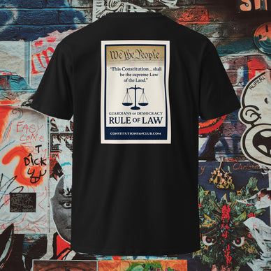 This design centers the Constitution as the supreme law of the land, honoring the rule of law as the foundation of a free and enduring democracy. The balanced scales symbolize justice, accountability, and the shared responsibility of civic guardianship.