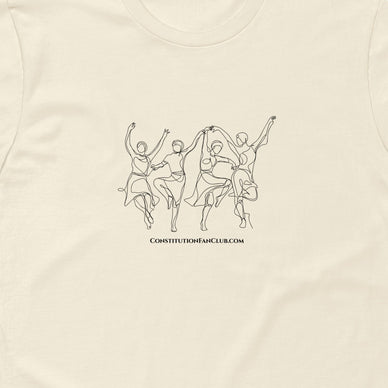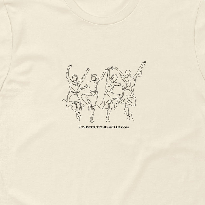 The Democracy Dance Tee celebrates joy in motion — a flowing line-art illustration of four figures dancing together, linked in community and lightness. Simple, expressive, and full of life, it’s a reminder that collective joy is its own form of power.